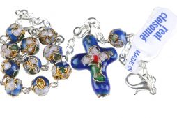 • Bracciale Rosario in cloisonnè blu con croce e grani 6mm