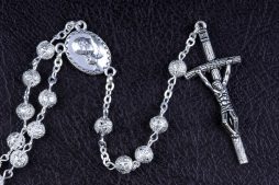 • Rosario in filigrana argentata, sulla crocera a medaglia Papa Giovanni Paolo II Santo
