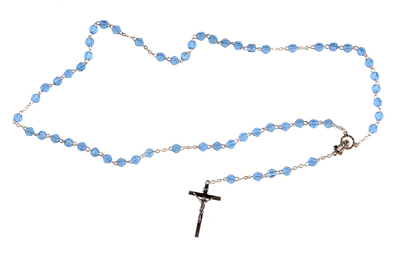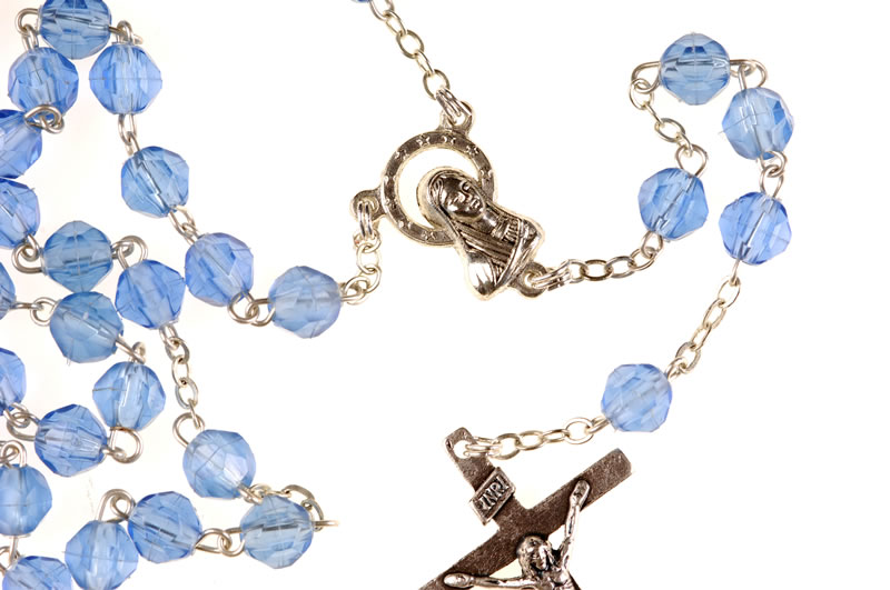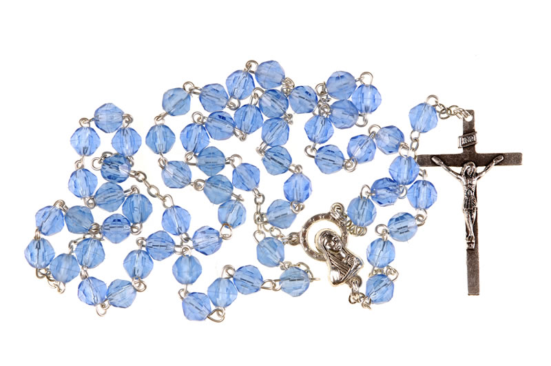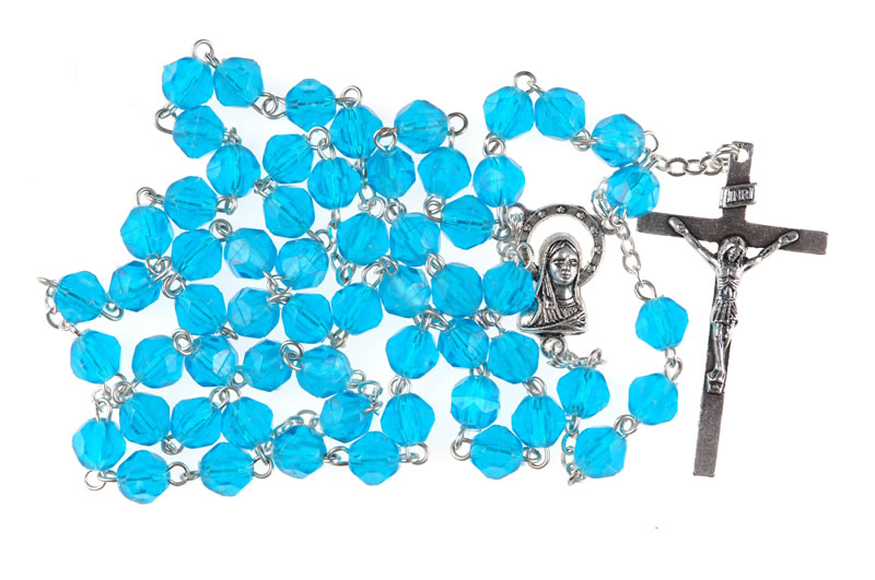 Aqua coloured transparent plastic Rosary with 6mm faux crystal beads.