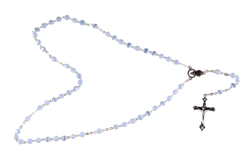 Cat’s eye rosary, ligth blue, 6mm beads.