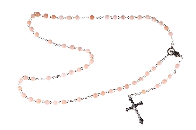 Cat’s eye rosary, pink, 6mm beads.