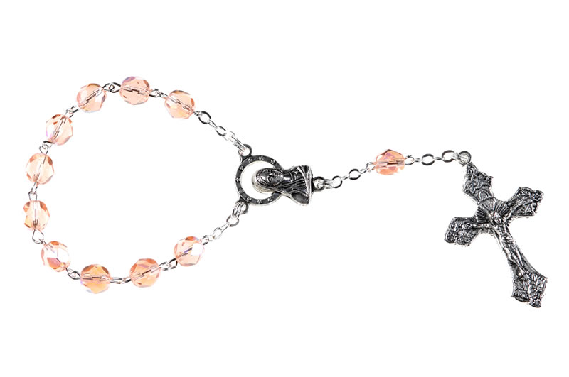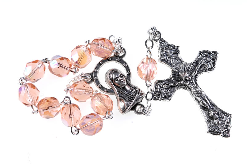 Decina da preghiera in semicristallo rosa, grani 5mm