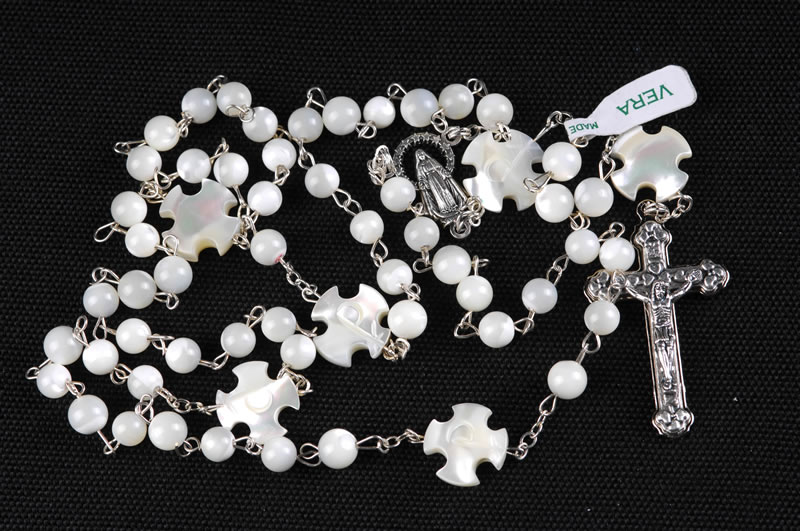 Real mother-of-pearl Rosary, 6mm beads, with crosses separating decades