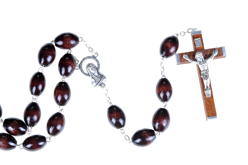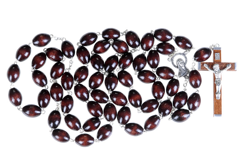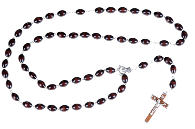 Rosario capoletti in legno palissandro, grani 10x15mm, lunghezza 70cm, croce 5,5x3cm
