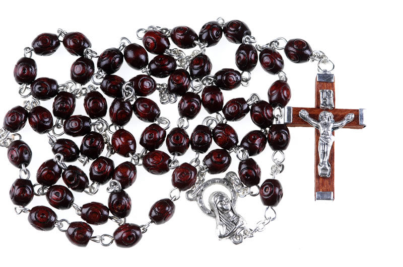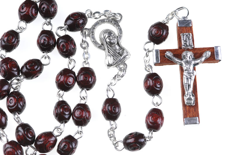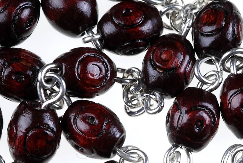 Rosario in legno palissandro con grani lavorati 6x7mm