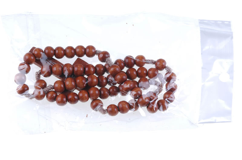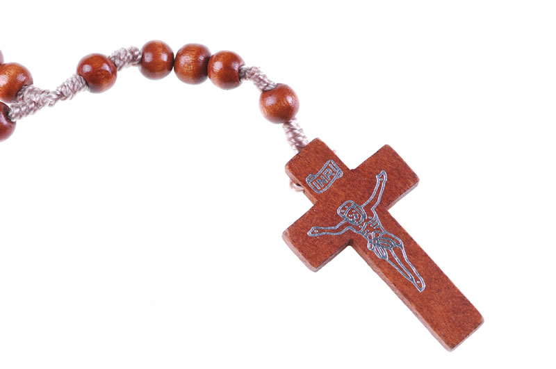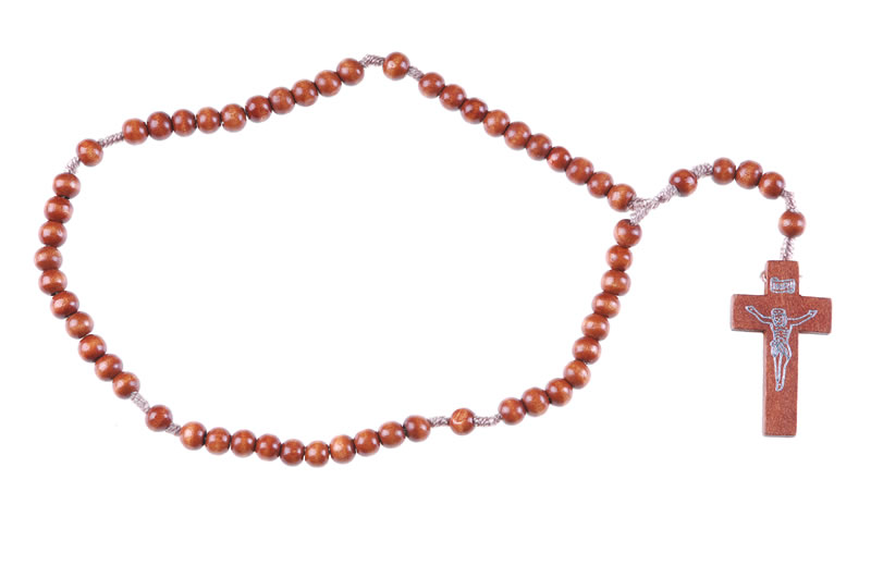 Rosario Franciscano de madera natural y cuerda, cuentas de 6mm (descuentos automáticos en base a la cantidad)