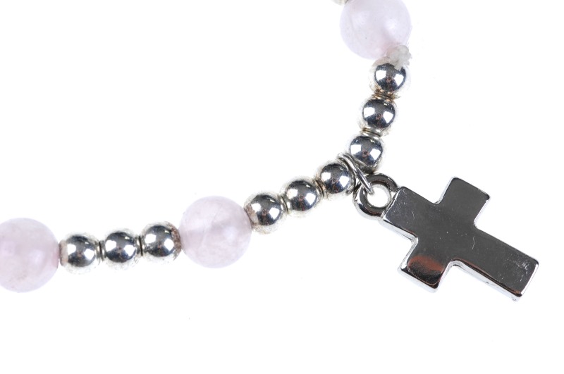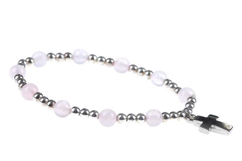 Bracciale Rosario elastico in vera pietra semi preziosa di quarzo rosa