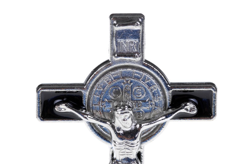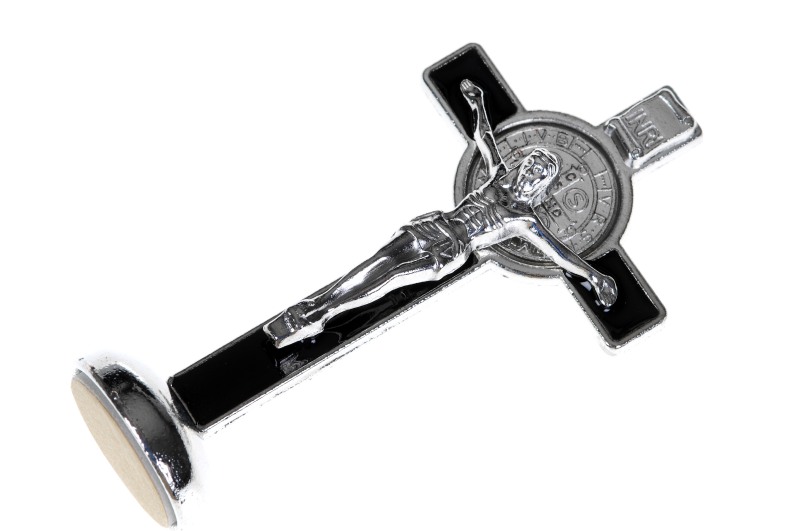 Sii il primo a recensire “Crocifisso da tavolo in metallo laccato nero con base adesiva e medaglia di San Benedetto, mm 80×40” Annulla risposta