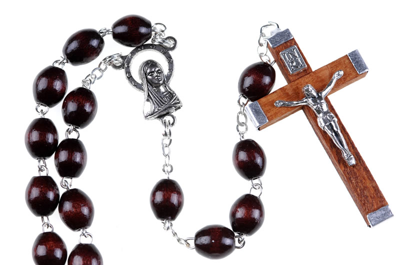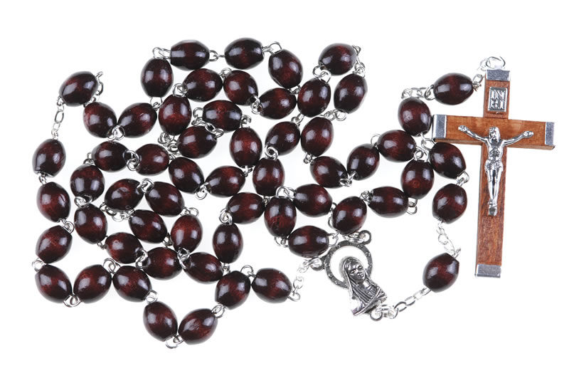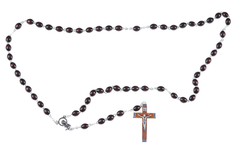 Rosario in legno palissandro con grani 7×8. Ogni Rosario è confezionato in un pratico astuccio trasparente con apertura adesiva apri/chiudi.