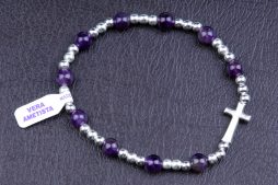 • Bracciale Rosario elastico in vera ametista e metallo argentato, grani 6mm (sconti per quantità)
