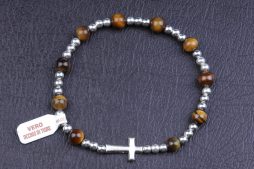 • Bracciale Rosario elastico in vero occhio di tigre e metallo argentato, grani 6mm (sconti per quantità)