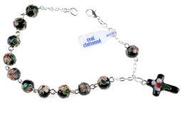 • Bracciale Rosario in cloisonnè nero con croce e grani 8mm
