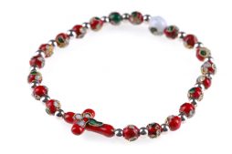 Braccialetto elastico in cloisonnè rosso con croce e grani 6mm