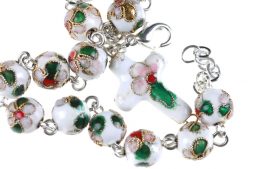 • Bracciale Rosario in cloisonnè bianco con croce e grani 8mm