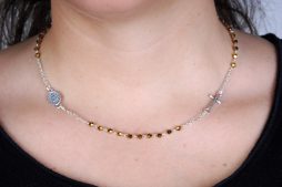 • Collana Rosario in vetro oro e metallo argentato con medaglia della Madonna Miracolosa e piccola croce (sconti per quantità)