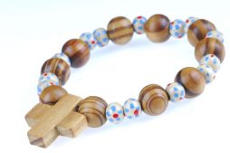 • Bracciale Rosario elastico in legno naturale con croce (sconti per quantità)