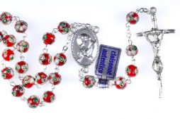 Rosario Papa Giovanni Paolo II Santo, in cloisonnè rosso, grani 8mm