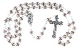 • Rosario in strass di cristallo di Boemia rosa, grani 6mm (sconti per quantità)