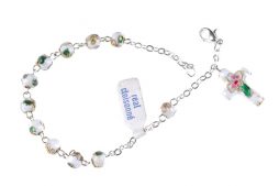 • Bracciale Rosario in cloisonnè bianco con croce e grani 6mm