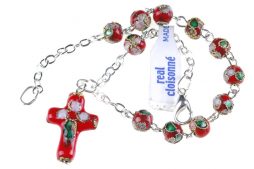 • Bracciale Rosario in cloisonnè rosso con croce e grani 6mm
