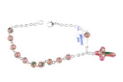 • Bracciale Rosario in cloisonnè rosa con croce e grani 6mm