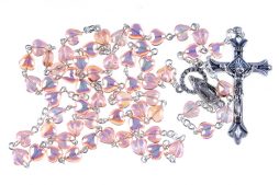 • Rosario rosa con grani a forma di cuore, crocera della Madonna miracolosa (sconti automatici per quantità)