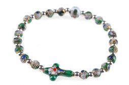 • Bracciale Rosario elastico in cloisonnè verde con croce e grani 6mm