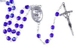 • Rosario Papa Wojtyla Santo, in semi cristallo blu, grani 6mm
