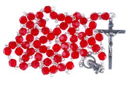 • Rosario rosso in plastica trasparente imitazione cristallo grani da 6mm (sconti automatici per quantità)
